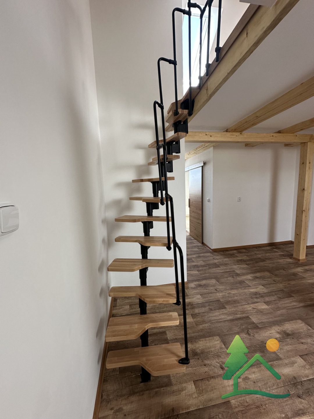 Byt je řešen jako mezonet – ve spodní části se nachází obytný prostor s kuchyňským koutem a koupelna se sprchovým koutem. V horním patře je umístěna útulná ložnice, která poskytuje dostatek soukromí.